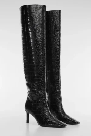 AgotadoCroc-effect finish. Sleek long design with a pointed toe. Stiletto heel with a height of 8.5 cm. Features a side zipper closure and a back slit detail for added style and functionality.