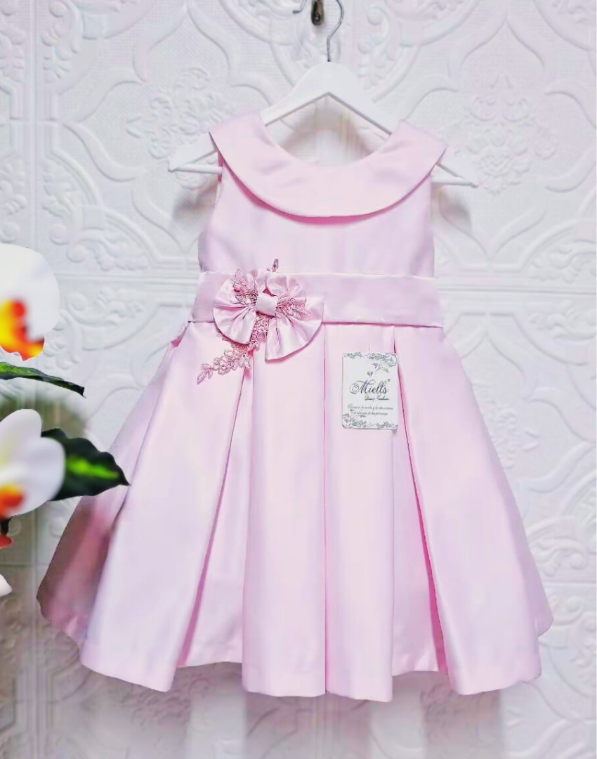 Descubre la dulzura y elegancia de este encantador vestido casual para niña, confeccionado en razón francés Podusua, una tela suave con acabado satinado que brinda un toque de distinción.