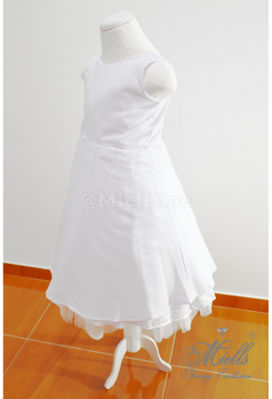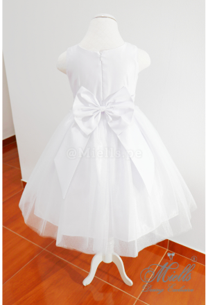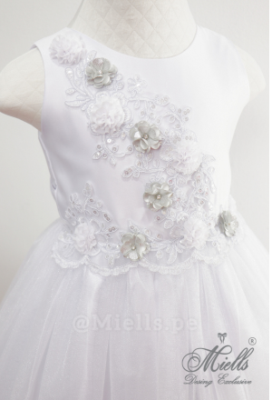 Haz que ese momento especial sea inolvidable con este hermoso vestido de fiesta para niña de la reconocida marca Miells, diseñado para resaltar la dulzura, elegancia y encanto de las más pequeñas. Este modelo en color blanco es ideal para ocasiones únicas como matrimonios, bautizos, cumpleaños o sesiones de fotos, donde tu niña lucirá como toda una princesa.